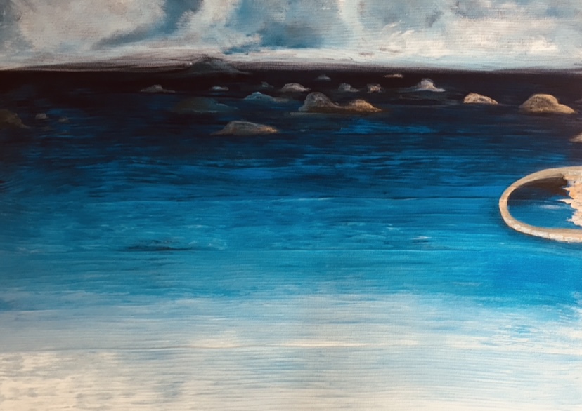 ACRYLIC PAINT AND GLUE ON CANVAS