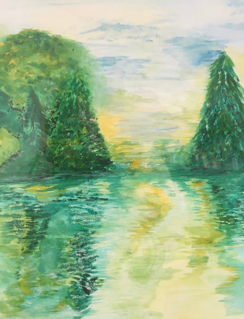 Many pieces have been inspired by nature, as this is were serenity lies. An example is “The Black Lake” found in Montenegro. The artist spent many of her summers in Montenegro and on this particular exploration of the country, camped in the area known as Žabljak. It is an area which has one of the highest altitudes in the balkan region and is surrounded by numerous lakes and mountain tops. The artist captures her travel and exploration by documenting it in visual form. These pieces were created in quaint and peaceful places, places perfect for escape.